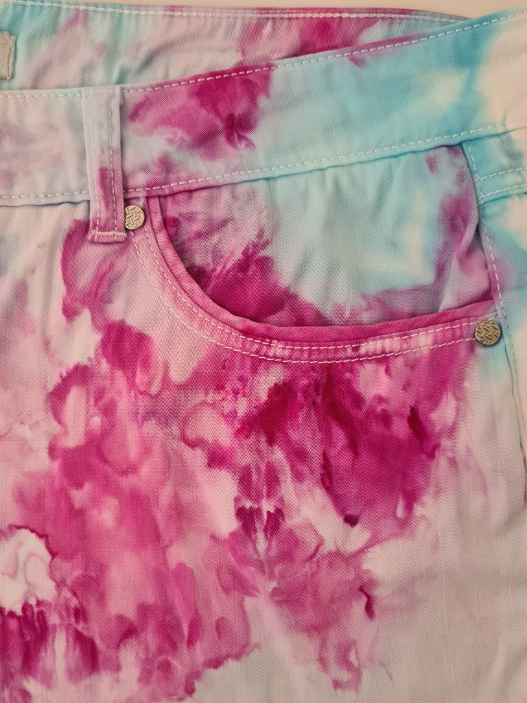 Clothing and Textiles purchased at Op Shops and other secondhand stores, that have been given a new, more colourful, lease on life.