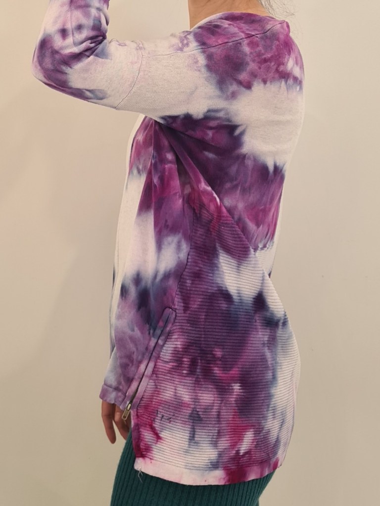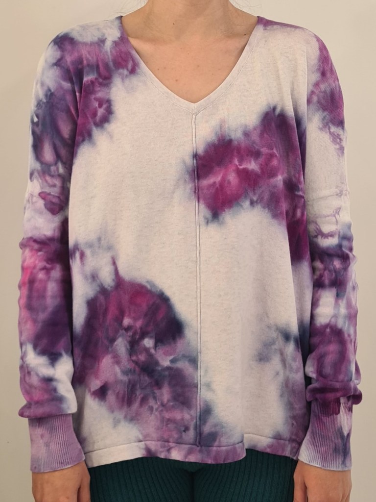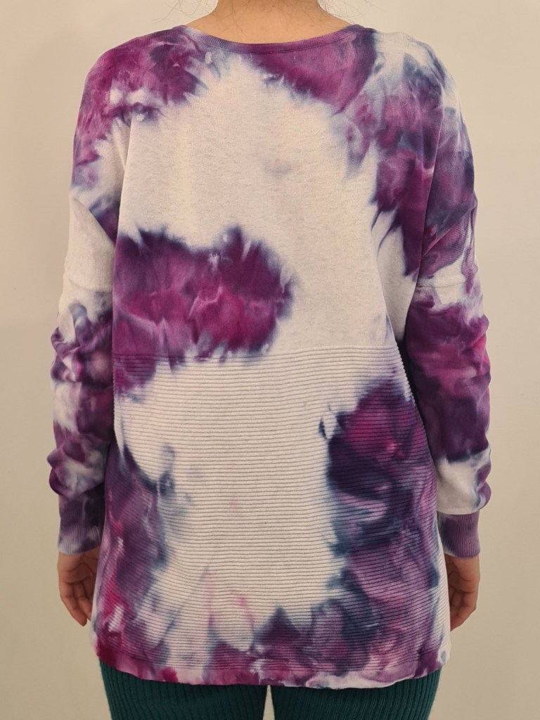 Vibrant Ice Dye Sweatshirt from the Upcycled Collection. Blending style and sustainability, this sweatshirt has been transformed into a unique and bold statement piece.